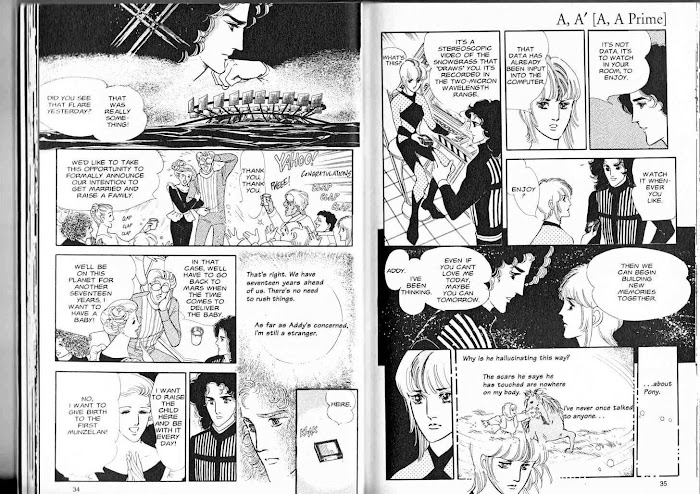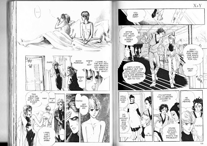 A, A' manga summary: Description from Viz: The story A, A' raises a troubling question: How would you feel if your lover died - and was replaced by a clone? Could you recreate your relationship with someone who was physically exactly the same but didn't share any memories of your life together? In 4/4, teenaged Mori flunks out of an ESP training program. But when he meets Trill, a beautiful Unicorn, his latent abilities begin to blossom... In X+Y, Hagio uses science fiction to explore questions of gender and sexual identity. Time has passed, and once again, Mori finds himself inexorably attracted to a member of the unicorn race - but this unicorn is male... and so is Mori. X+Y won Seiun Award in manga category in 1985