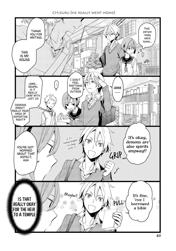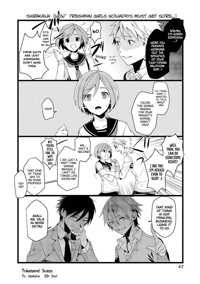 Description :Chizuru is your typical shrine maiden high schooler living in a shinto shrine. One day, her friend, Aki asked her to do an exorcism for her but since Chizuru couldn't do it, they decided to ask the help of their attractive senior, Asakura, who's said to be able to do exorcisms. However, Asakura has an unbelievable fetish! In addition, Asakura's classmate, Suyazaki, is just as much of a weirdo as he is! What shall Chizuru do as her fate gets entangled with such a ridiculous group of people?!