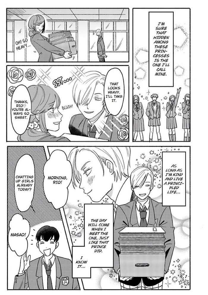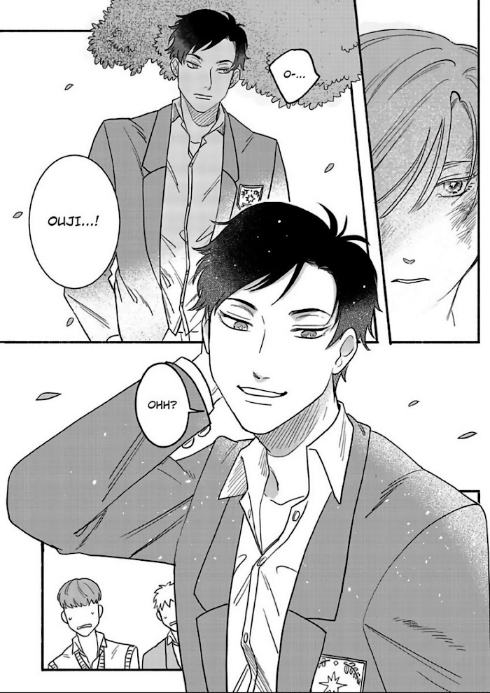 Ever since becoming enamored with a prince as a child, Rio Arisugawa's been striving to be a chivalrous gentleman, and it's made him the most popular boy in school. One day, his upperclassmen gang up on him out of jealousy. Right when he's about to get walloped, someone waltzes in nonchalantly and saves his skin... and it's third-year Ouji Hiyama, the delinquent who the whole school fears! Ever since that day, Rio's been chasing Ouji around like mad, trying to become his disciple, but no luck. That is, until Rio witnesses Ouji getting up to no good, which creates a bond of secrecy between them... It's not as straightforward as it looks to become a real prince! Thus begins this warm and fuzzy romantic comedy between two schoolboys in a master-disciple relationship!