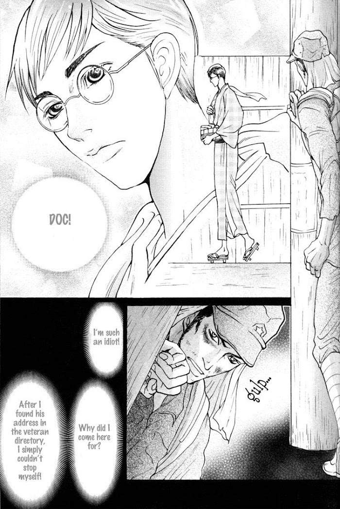 From Fantasyshrine:Story 1) Passionate love that burns the body!!Also included raving, popular ninja series "Kirigakure no Koi"!!Army physician, Misono, was stationed in the southern frontline when he first met the wild Sergeant Kizaki. One day, the infirmary was bombed and Misono wouldn't have survived if not for Kizaki. However, while Misono was delirious with malaria fever and shock, Kizaki preyed on him!Story 2) Rookie ninja Mozu was entrusted with a dangerous mission-- to assassinate his master's master, the rumored ninja defector, Tobimaru! To help Mozu with this impossible mission, his master, Kirimaru, must teach Mozu how to lure Tobimaru with sex!