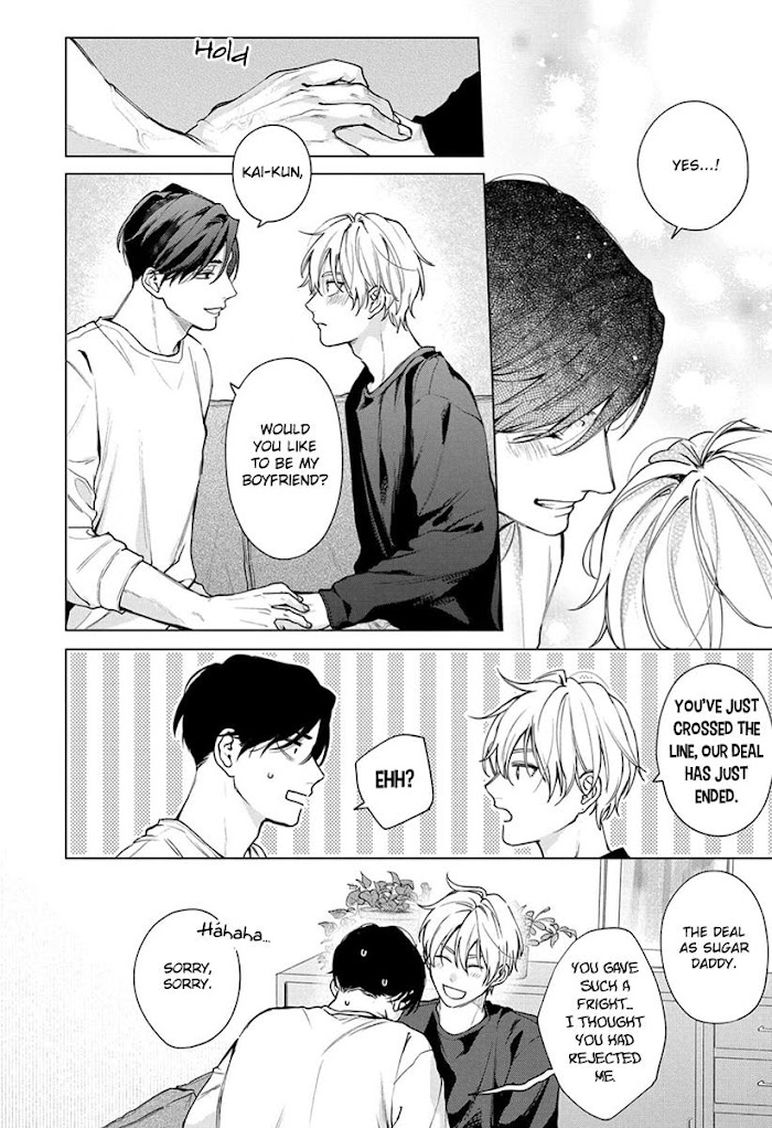 Kai spends his days as a sugar baby. One day he’s saved by Yuma who happens to be around while he was having an argument with a client. Kai immediately notices Yuma’s refined appearance and kind spirit, and asks him to be his “sugar daddy”.Surprisingly, Yuma, who’s eager to experience new things, accepts Kai’s proposal. As time goes by, Kai starts feeling attracted to Yuma, who, unlike his other “daddies”, respects him and takes care of him. Despite these acts, there’s a reason why Kai can’t fully trust him…