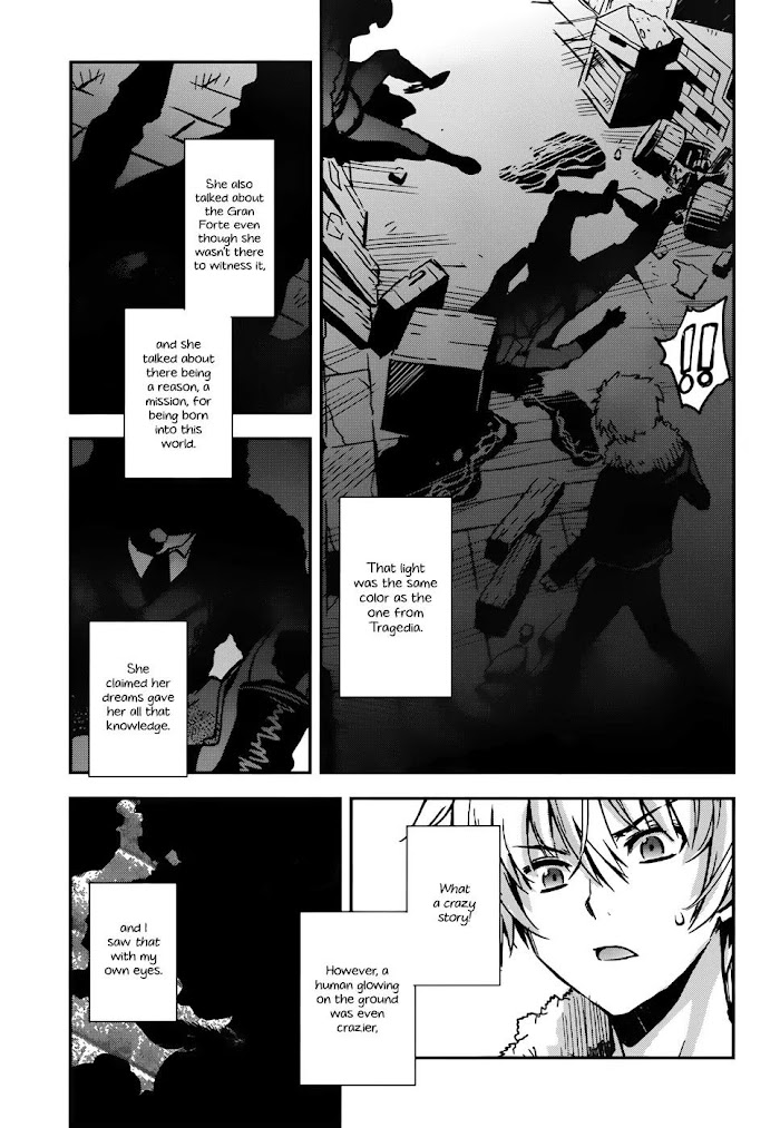After the surface of the world succumbed to chaos centuries ago, the city of Novus Aether is kept afloat in the sky solely by the continual prayers offered by the Saint. Years ago, when the Saint's prayer was interrupted, an incident known as the "Gran Forte" occurred, causing a portion of the land to fall and split the lower city into two, separated by a cliff. Countless lives and property were lost or irreversibly affected in what would be known as the greatest disaster in the city's history. In time, the lowest layer, known as the "Prison," became the home to people who lost much of their former lives during the "Gran Forte." Crime, famine, and disease run rampant, with "The Noncorroding Gold Chains," the ruling organization in the area specializing in the sex trade, keeping what little order that still exists. Meanwhile, a contagious disease which causes the infected to grow wings has spread throughout the city, and a unit commonly known as the "Wing Hunters" has been formed to deal with these people swiftly and often violently. In this "Prison" resides Caim Astraea, a freelance ex-assassin who does odd jobs for his friend, the head of "The Noncorroding Gold Chains," for money. During one request, Caim finds Eustia, a winged girl who emits the pale purple light characteristic of the "Gran Forte" incident years ago. His encounter with Eustia will take him on a journey which will involve him with the most influential bodies of the city, including the Church and the royal government. As he searches for the meaning to his cruel, difficult life, he will discover the deepest and darkest secrets of Novus Aether... (Source: Wikipedia)