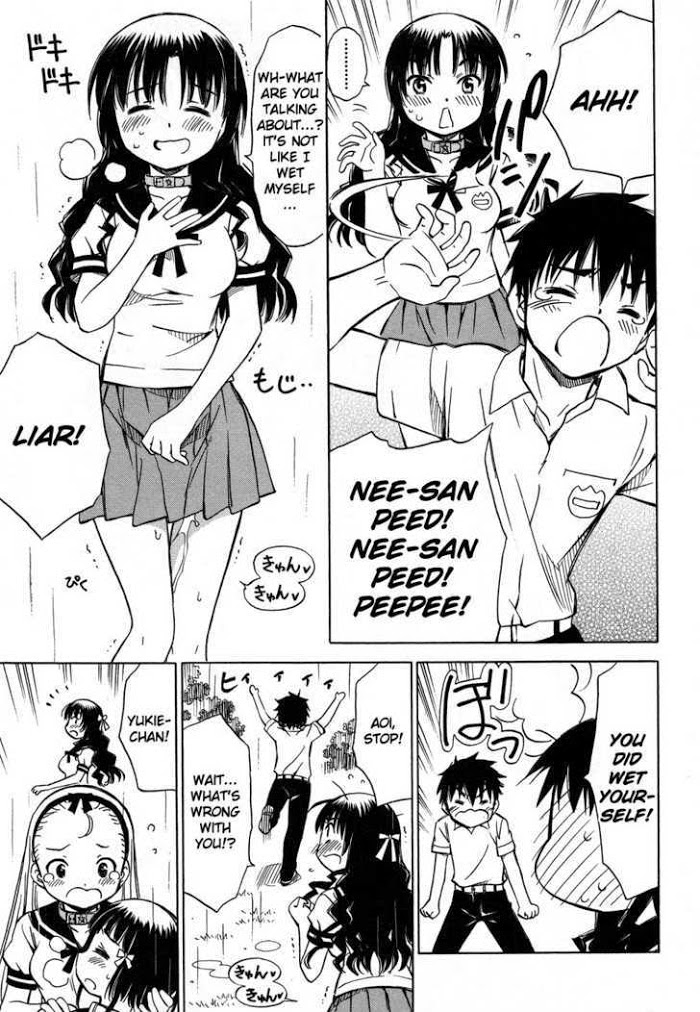 Aoi Kururi is an onmyou-ji who is studying smells at a private academy. He in fact hates using onmyou magic, but when a spell is mysteriously cast on his whole class that causes everyone to wet themselves, he finds that with the warm power and sweet smell of girls' pee, his magic becomes more powerful, and he saves his class by breaking the spell. This is the story of the strange misadventures of Aoi, his sisters, and his friends. (Source: MangaUpdates)