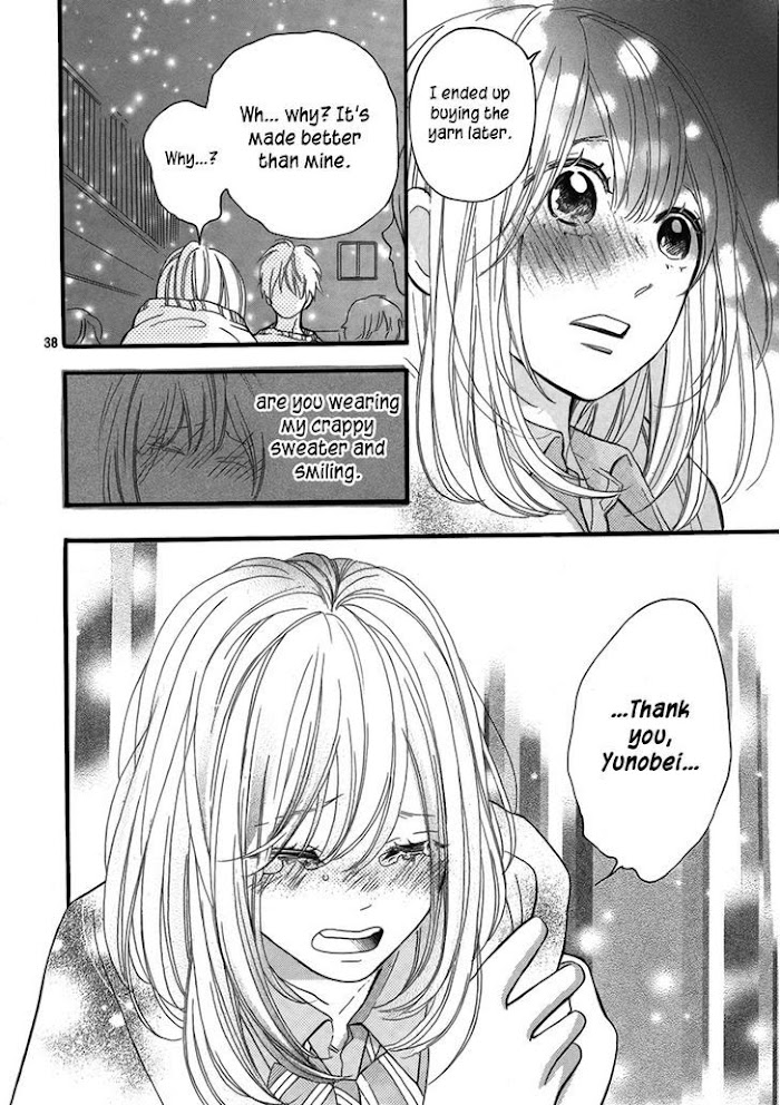 Momiji knits a sweater for her friend, Yunobe, who's going to be in the school's Christmas fashion show. (Source: MU)