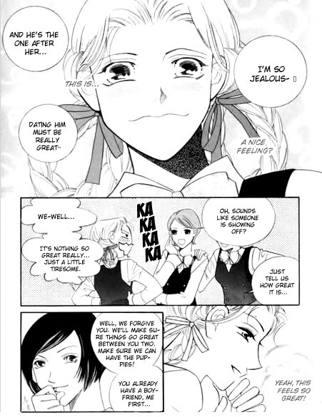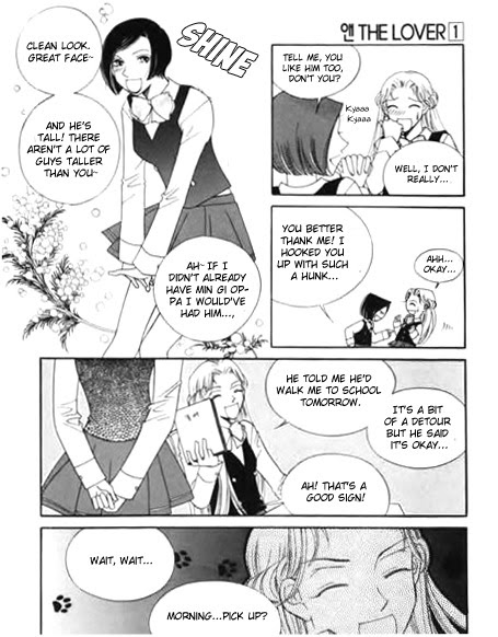 The main character Hansul, a high school student in grade 10, has never had a boyfriend before in her life. She starts dating Sulgyo in order to buff at her teasing friends. However, as their relationship got more and more stiff, she starts arguing with him. The argument ends awkwardly, and a sweet romance starts when they begin to truly fall in love.. (Source: M-U)