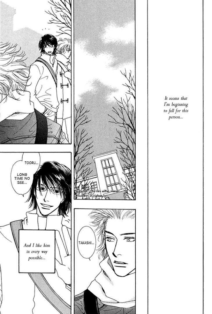Yuusuke is a high-schooler afraid of being branded differently from others. To date, he's had nothing more than casual relationships. Shin is afraid of losing the people he loves. To date, he has not had a serious relationship with anyone. Kenji is a cop who has a inferiority complex when compared to his honor student brother and his lover, Misonou, a novelist. A certain incident brings these four people together. This is an adult love story about the emotions of different people who harbor feelings of loneliness in their hearts. (Source: M-U)