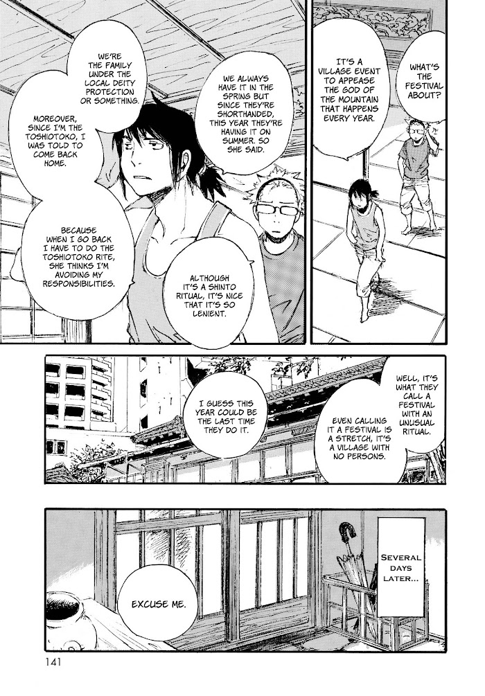 Sennoki Kentarou thinks of himself as a would-be novelist but is actually a NEET living at an old house belonging to his family in Tokyo. By refusing to visit his grandparents' village to participate in a festival he angers a certain Shinto deity. (Source: MU)