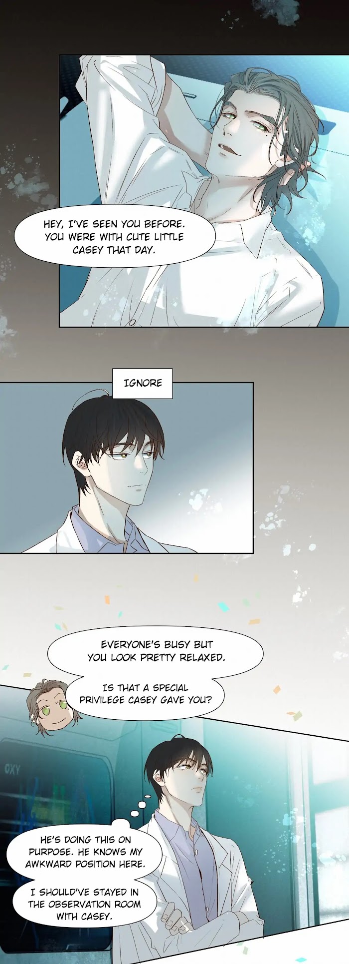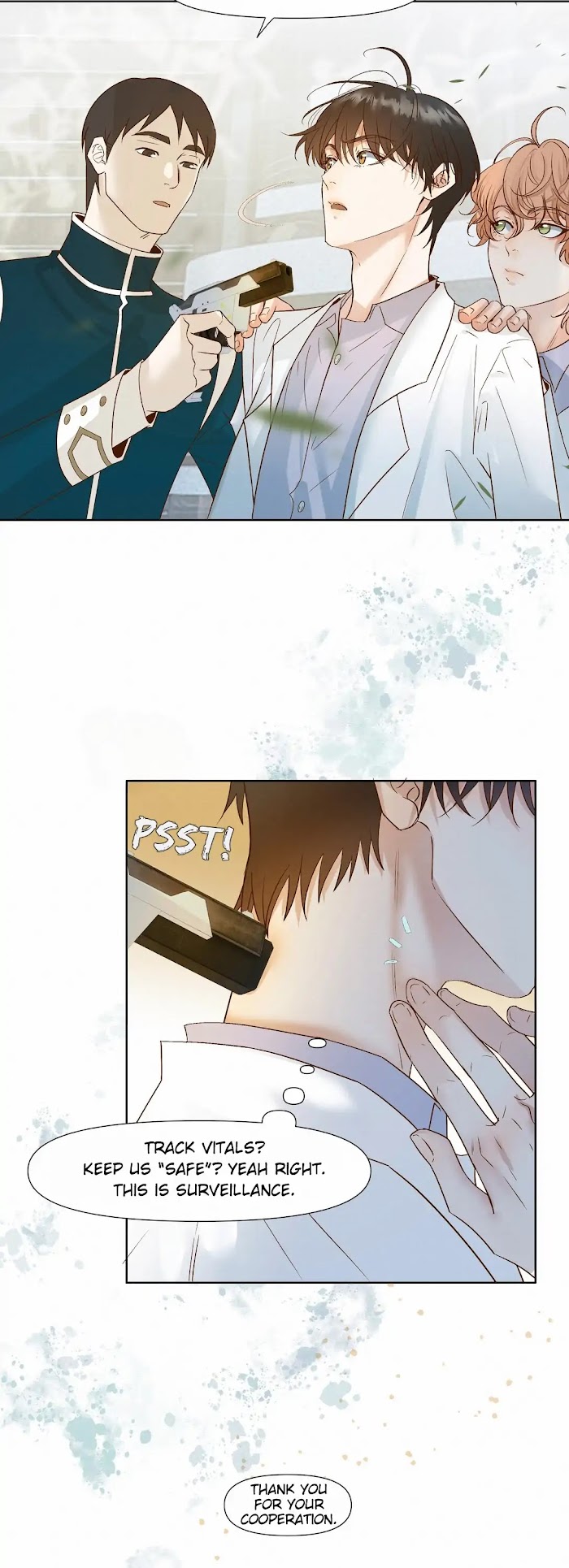 [Translated by Lilith Scanlations] As the “Comet” virus swept across the earth, infecting most of humanity and turning them into zombies, the remaining survivors sought refuge in the underground city of Shire. Xiao Yan, a rookie researcher longing for a quiet and peaceful life, unexpectedly finds himself rescued by Heine from the Special Forces during a mission. Xiao Yan is instantly drawn to Heine, but little does he know, Heine has started to think about how to devour him behind closed doors…