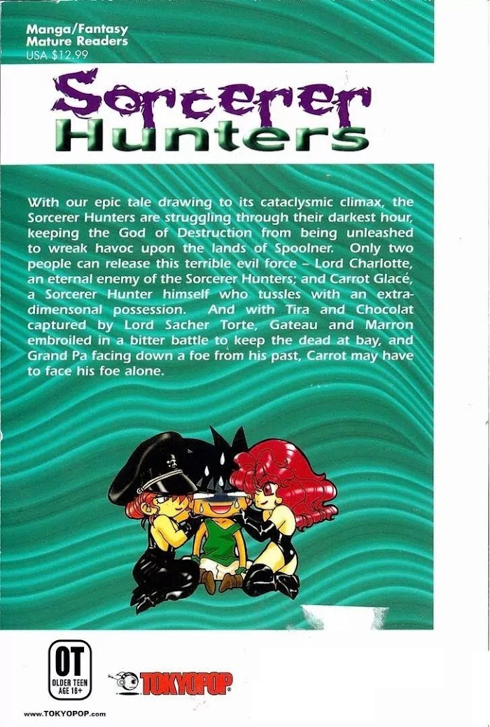 In an age of magic and sorcery, the world is divided between those who have supernatural powers and those who don't. Fighting for justice and against black magic and evildoers everywhere are the Sorcerer Hunters: Gateau, Carrot, Chocolat, Mocha, and the rest of the gang. Their quest is to destroy each of the Platina stones- the objects the evil sorcerers use for creating their black magic - in an entertaining mix of farce and adventure. (Source: Tokyopop)