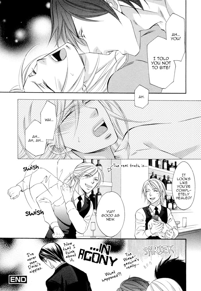 Daiki was bought by the Sasaki Group's Wakagashira Tatsumi, who then left Daiki in charge of his bar, Moderate, in order to discharge the remainder of a large debt from his parents. Daiki wants to protect the one place Tatsumi can find peace and is determined to be Tatsumi's shield if need be, but... A love story about two people who need each other more than anyone else even though neither man realizes their feelings for the other. (Source: Dangerous Pleasure)