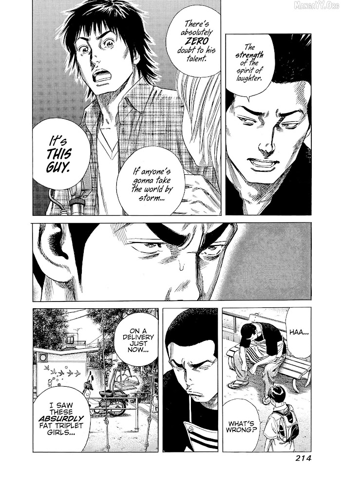 A story about a stand-up comedian to-be. The manga's story centers around Agatsuma Keisuke, a high school student with a great sense of comedy. A student named Tsujimoto Jun transfers to his school. Both share ideas and form a plan to make a stand-up comedian duo. They aim to become pro together, despite the many hardships they will face. (Source: ANN)