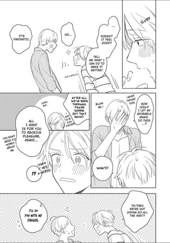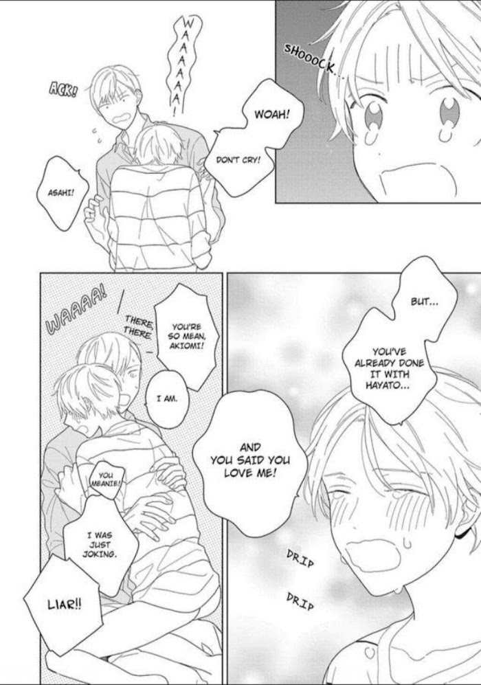 Pop idol Asahi is suddenly told that his agency's going bankrupt and that he no longer has a contract with them. As he's wandering the streets trying to get his life back on track, the person who saves him is veteran actor Akiomi Satake. After being invited over, Asahi starts living with Akiomi. Then, that night, while he's trying to sleep, Asahi notices that a guy's touching him. Even though he was half-hoping it was Akiomi, it turns out to be a handsome college student, Hayato, whom he's never met before...!! That's when Akiomi enters the room and the rest of the night is filled with shameful acts of love... Let this comedic love story about three guys living under the same roof begin! Rating : 18+ Uploaded: Bato.to Localization by : Renta