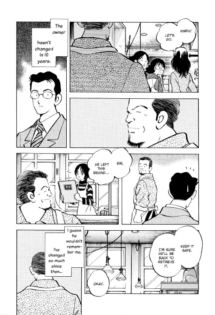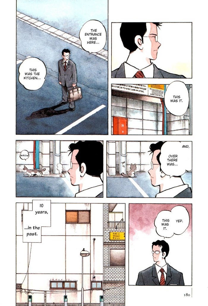 The only common feature running through these stories is a grown-up protagonist somehow coming face-to-face with his childhood past, in a testament to the loss of youth, the disillusionment of growing old, and nostalgia for better times. In the Adachi pantheon, this is a rare diametric view of his eternal theme of "youth," in this case youth as seen through the lens of the past. It's a powerful statement from Adachi that might even be an acknowledgment of his steadily-creeping age. What is impressive about these stories is not the plots or characters themselves, but the absolutely perfect way he tells them, another facet of experience that comes with age. Most of the stories may require multiple readings to fully appreciate the airtightness of the plot and visual motifs. (from Mangascreener)