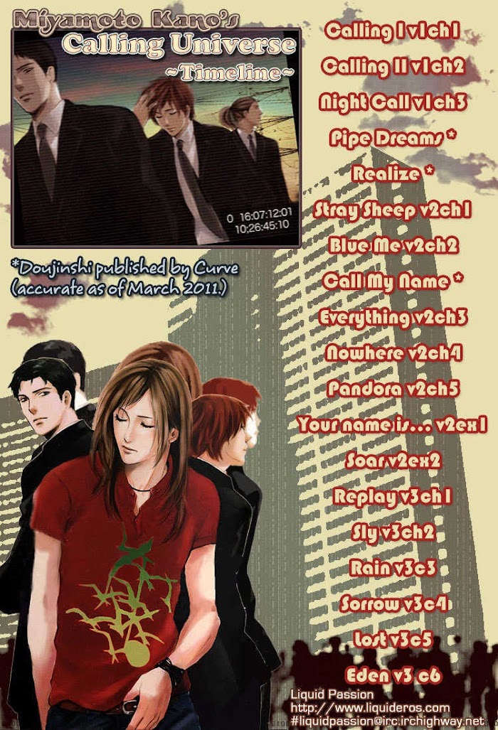 Volume 1: Calling 1-2. Calling 3. Night Call 4-5. Ougon no Ame Volume 2: Nowhere 1. Stray Sheep 2. Blue Me 3. Everything 4. Nowhere 5. Pandora 6. Soar Volume 3: Eden 1. Replay 2. Sly 3. Rain 4. Sorrow 5. Lost 6. Eden