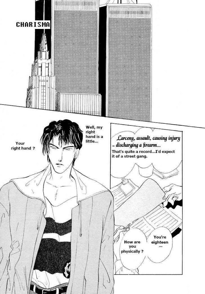 Charisma (ISHIHARA Satoru) manga summary: From Translated Treasures: It is a multi-perspective story following several different characters. The central character is Archer Rogue. Archer's entire family is a bit off-kilter. His father Ed is bi-polar due to physical abuse from his father as a child. As a result, he beats Archer at times ("for his own good"), or swings to a scared, child-like persona and is incapable of even feeding himself. Archer's childhood was understandably difficult, and he's a rather closed-off, violent person as a result. His older half-brother Murphy is mentally retarded. The story follows Archer (street name: El Gato) as he works with Deano to infiltrate the drug cartel that has a long-standing grudge against his gang. Along the way he meets Ken, not knowing that he is also infiltrating the cartel (for the police). It contains lots of conflict between groups, inside of groups, and with seeming random strangers. The stories in the first volume are in published order, rather than chronological: the first manga begins with Archer being released from prison for shooting his father. Then it goes back to a young 15-year-old Archer and how it all started. Prequel to Inu no Ou