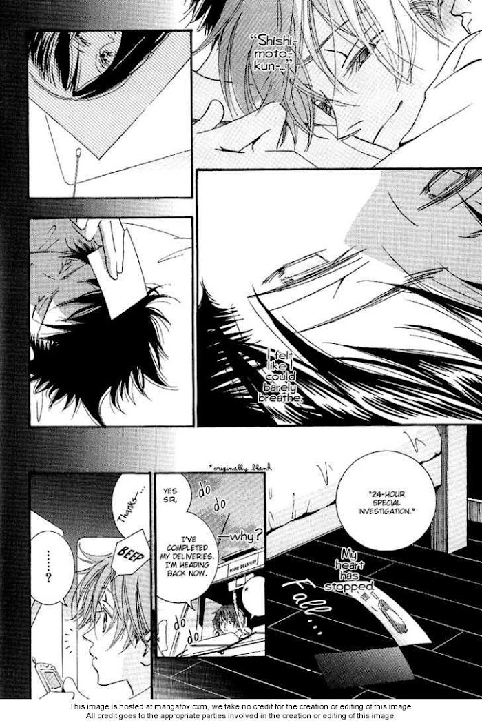 Anthology of 3 stories. 1) Ciao, My Darling - Shishimoto who makes his living as a computer wizard picks up down-on-his-luck Tomosaka and his cat Hana off the street. Shishimoto seems to really have it all together, while Tomosaka can't even hold down a job for any length of time -- but not all is well behind Shishimoto's gruff facade, and over time Tomosaka finds out what's wrong, and comes to care. But then he causes Shishimoto to lose a lot of work by pulling the computer plug at an inopportune time to save electricity (quibble: the mangaka doesn't understand computers). Shishimoto has to call in his female friend Mika to help, which pushes Tomosaka into confessing his love for Shishimoto. But Shishimoto doesn't react well to his confession. (Source: Manga Updates)