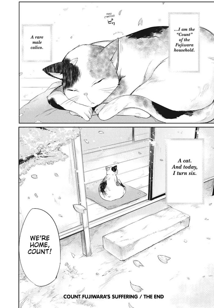 Count Fujiwara's Suffering manga summary: Hakushaku is the 5-year-old male tortoiseshell cat in residence at the Fujiwara home. He has a tough job trying to keep the two daughters, Shizuka and Yumeko, in line, and he often ends up suffering for his efforts. Shizuka is a high-school-age girl who has stopped going to school and has become a shut-in. Hakushaku tries to encourage her, but sometimes he has to stop her from doing embarrassing things, like showing her boobs on the internet. Yumeko is the younger sister, a middle school girl who has a huge crush on Shizuka. Hakushaku doesn't know how to handle this sister complex! A cat has a hard job in a household with such unusual girls!