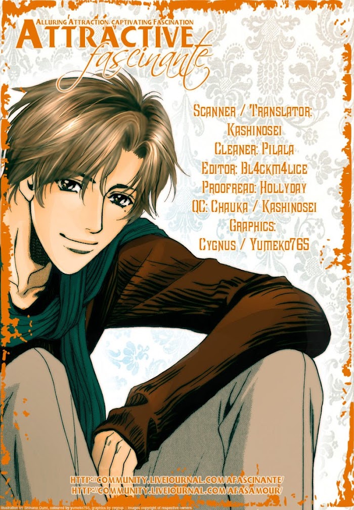 Yajima met a gorgeous young man, Ryo, when he was investigating a case. He was mesmerized by Ryo's eyes and got his badge stolen instead. Who is Ryo? What does he want? And who was the man living in Yajima's heart? The tormenting memories are coming back again…Another excellent work from Oumi Shinano sensei! You'd definitely fell in love with this middle-aged cool uncle and the pretty boy! (Source: Attractive Fascinate)