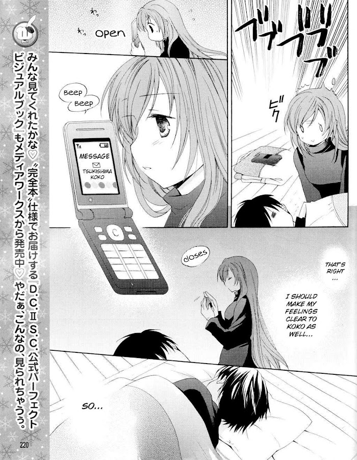 Due to family issues, Nanaka starts to stay in the Yoshino household, living together with Yoshiyuki and Sakura. In the same setting as the original D.C.II with a different story that revolves mainly around Nanaka and Koko.