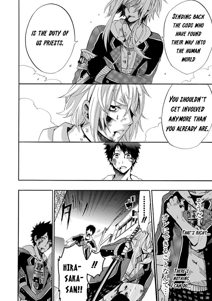 People have been going missing, and they have not been seen after 6 o'clock in the evening. The police only manage to find their bodies the following day. Rumours say that these people might've been "spirited away." Shintarou Asahina's classmates decide to catch the person behind this. But Shintarou doesn't want to be involved anymore… especially after what happened two years ago. It left him nothing but regret. On his way home one day, he hears noises near the shrine territory. And the clock has struck 6. Afterwards, Shintarou encounters his classmate, Natsume Hirasaka, who is in the middle of fighting against a monster. A god. As a priest, it is Natsume's duty to send back the gods who plan to bring chaos to the human world. Natsume told Shintarou to run away. And running away is what Shintarou did. If he just pretends not to notice anything, things will be back to normal by tomorrow. But… (Source: The Zero Alliance)