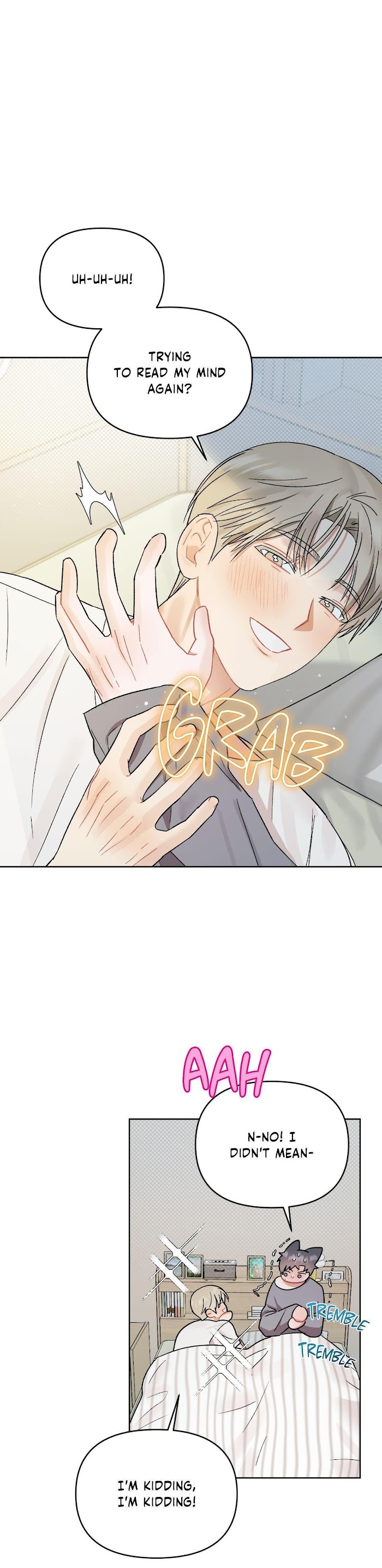 Arim has the ability to read other people's minds through physical contact. One day, he accidentally touches Taehun, his crush, and ends up reading his thoughts"I want to touch Arim""Should I just strip her and hold him right here?"Arim is utterly shocked when he realize that Taehun, who always seemed so kind and gentle, has been having such lewd thoughts about him."I can't believe someone as warm as him is imagining something so dirty""But why? Even though I know I shouldn't, I keep feeling it."