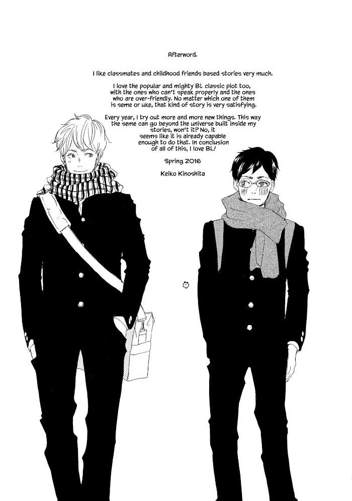 Mizuno and Mitazon were middle school classmates with polar opposite personalities. One day, years later, Mitazon calls Mizuno up to help take care of some stray kittens. Mizuno agrees to stay in his house to look after the kittens for a short while. This is living together with a classmate!