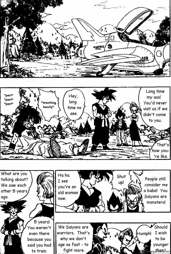 Two strange aliens are terrorizing the home planet of Tarble, Vegeta's younger brother, they have followed him to earth. Read as Goku and his friends try to defeat these aliens at the request of Tarble.