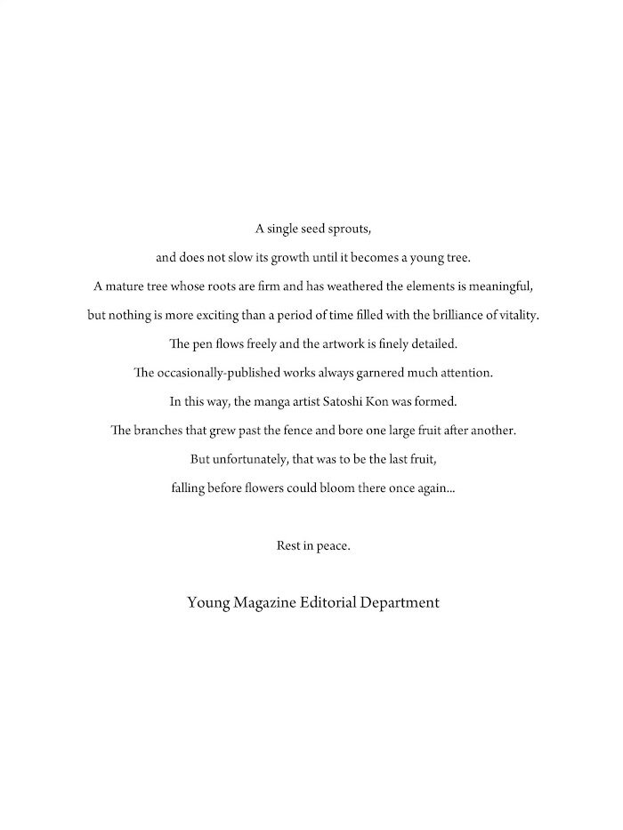 Dream Fossil manga summary: Dream Fossil is a collection of 15 short stories by the late Satoshi Kon. These stories, serialized in a variety of magazines in the 1980's, give a rare glimpse into the early stages of Kon's uniquely compelling style of storytelling. The buds of dream-like themes and imaginative worldviews that would blossom in his later animated works are also readily apparent. Yet the flights of fancy are anchored by knowing, empathetic portrayals of the very human nature of each story.