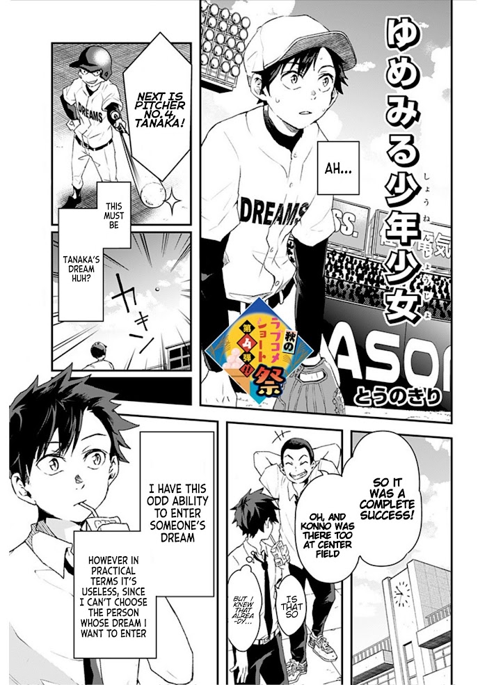 Konno is a boy who can enter into people's dreams, However he cannot choose whose dream. What kind of dream does Ayase-san, who he is thinking about, really have?!? The 4th autumn short romantic comedy festival presented by Jump + !!