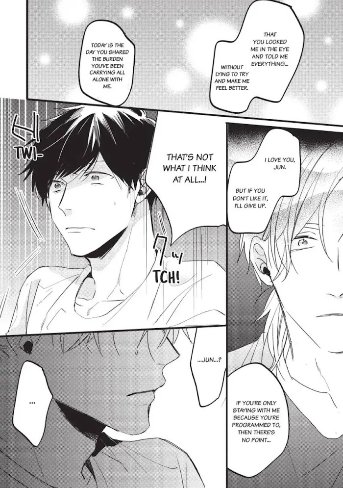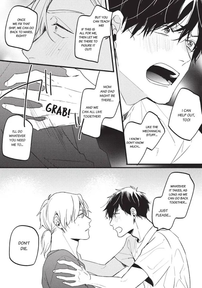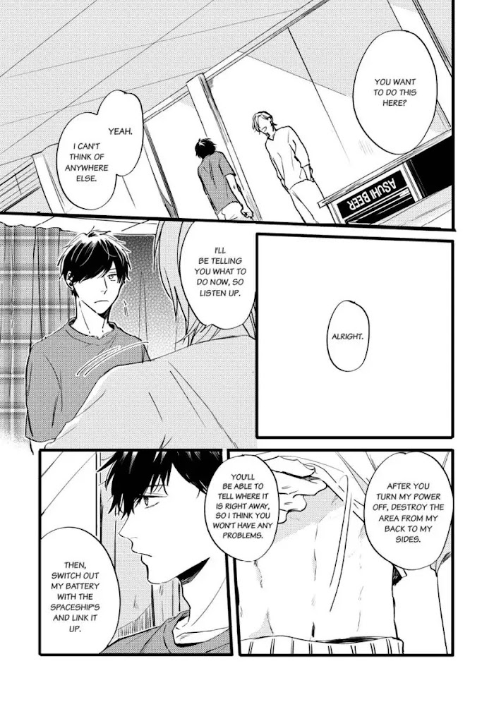 On a desolate Earth that has become difficult for human habitation, Itsuki, unconscious for two years because of an accident, ekes out a living on an island yet flourishing with his caretaker from childhood, Jun. While Itsuki doesn't remember what kind of accident he was in, he's fine with how things are as long as he's with his love, Jun... that is, until they have to start worrying about their dwindling resources. One day, the two of them find a mysterious machine and hear a voice from its communications device. Perhaps… there are other people still living on Earth as well. Though Itsuki is excited that the two of them can continue living together forever if they receive help, Jun's response is not so hopeful...
