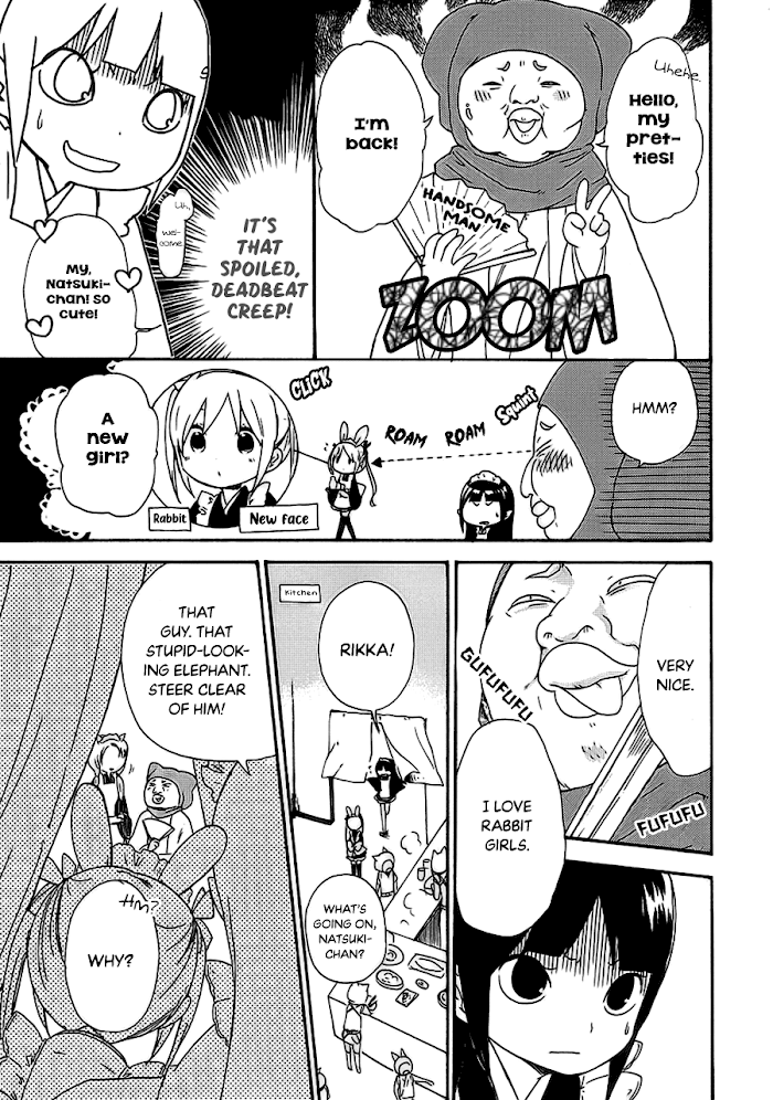 In the Land of Twelve Gods, everyone has a social class corresponding to an animal, and everyone is able to transform into their class animal at will. The young rabbit girl Rikka is married to the wolf-man Tooma, and the two are madly in love. He is a member of the wolfguards who uphold the law in the Land. This is the story of this happy couple and their adventures. Original doujinshi written and drawn by Kirioka Sana under the pen name "Sana" via the doujinshi circle Memechi Diamond. (The "circle" seems to have Kirioka as its sole member.)