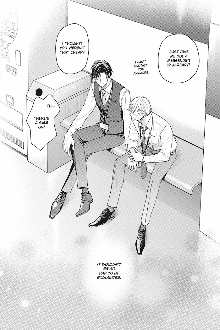 Izumi, the sales ace with excellent grades, good looks and great communication skills, has someone he absolutely cannot lose to.His name is Sendo, the most unlikable man who took the top spot from Izumi.Izumi was the top salesman and fan favorite amongst the girls in the office... that is, until Sendo came along.When a friend recruits him to be a plant for a gay dating app, Izumi agrees, so long as he never has to meet anyone in person. But when he makes a connection with "Kei", the temptation to meet his new friend becomes irresistible. After all, even if they meet, it's not like they actually have to start dating... right?!Well, turns out "Kei" is none other than Izumi's rival, Sendo! Moreover, what Sendo has in mind for Izumi isn't exactly "dating," and the intense pleasure that awaits them both might just be worth defying fate.+