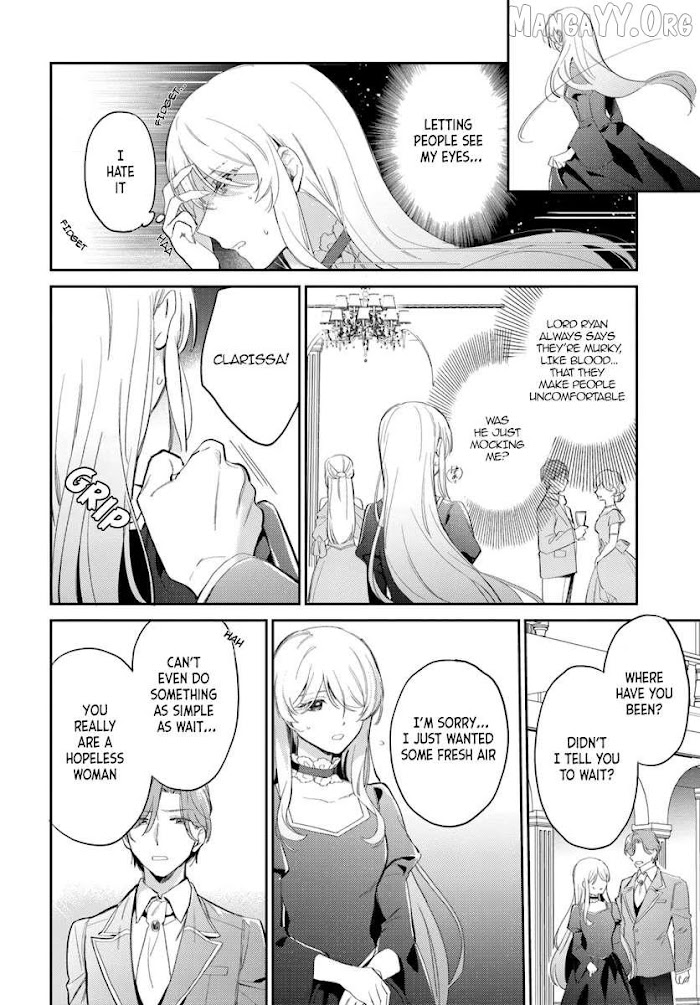 Clarissa, the daughter of the Marquis of Merriam, is told by her fianc Ryan that she is ugly and should hide her face with bangs. She is scorned in high society and referred to as the "Cinderella." Clarissa feels she has no place in the Marquis household where her stepmother lives, and she lacks self-confidence. But one day, while attending a party with Ryan, she meets a young man. A few days later, for some reason, she is summoned to the royal castle by the first prince, Lucas...!?