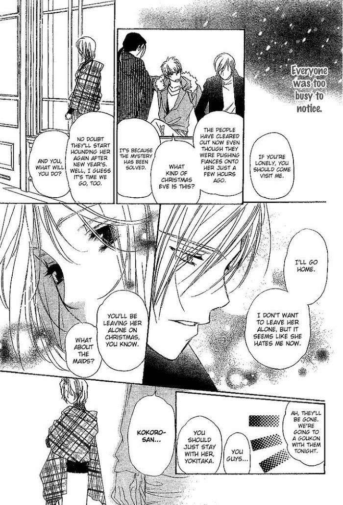 Folk Tail Tonakai manga summary: After Kokoro's parents die in a car accident, she remains the only successor of the Yukimine family and therefore the entire wealth also belongs to her. Being still young and inexperienced, her grandfather persuades her into choosing a fiance from a list of candidates. On top of all this, Kokoro can't see the candidates' faces because ever since her parent's accident she's seeing people's faces as animals and is unable to tell who's who. It looks like she's going to have to choose based on their actions (and maybe their hearts) witch it's rather hard to do considering that they are all suspected to have had a good reason to plan her parent's accident. Put all that into a Christmas-like atmosphere and you get a magical romance set in the holy night of Christmas Eve.