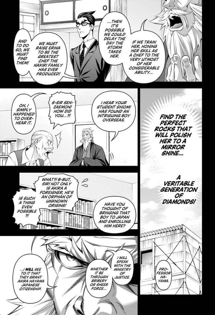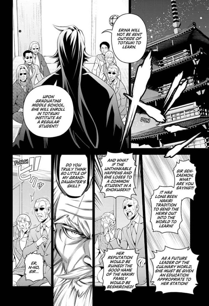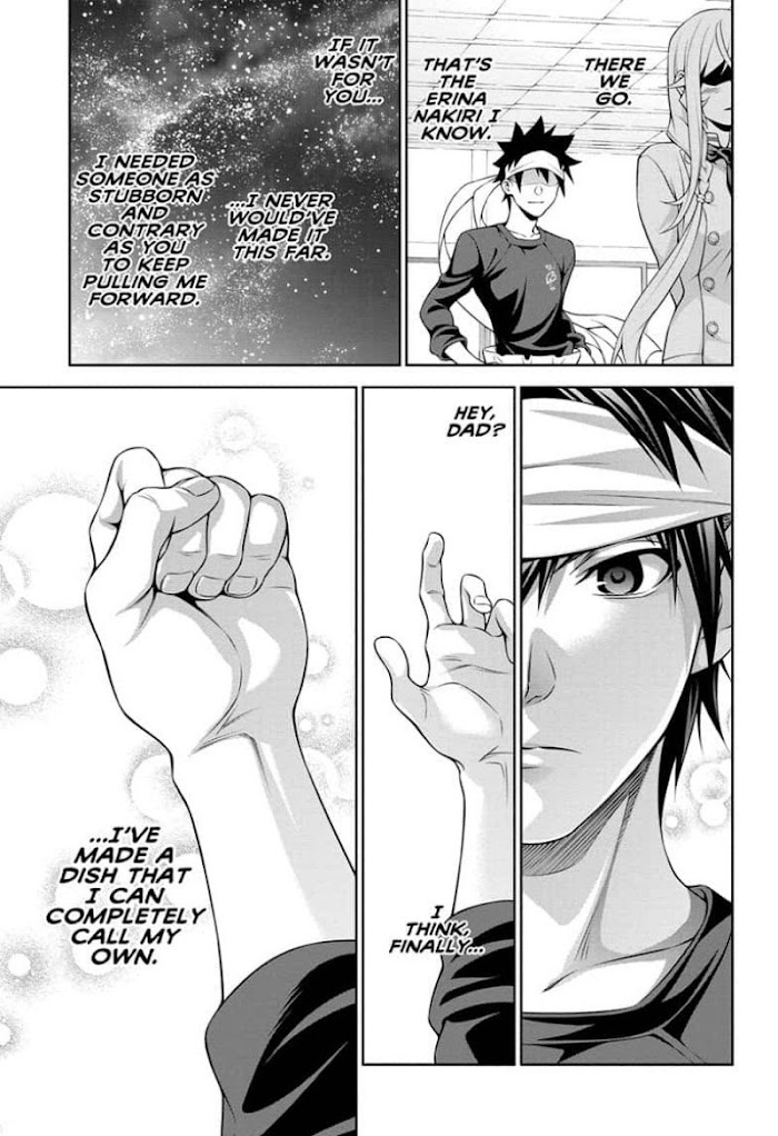 Soma Yukihira's old man runs a small family restaurant in the less savory end of town. Aiming to one day surpass his father's culinary prowess, Soma hones his skills day in and day out until one day, out of the blue, his father decides to enroll Soma in a classy culinary school! Can Soma really cut it in a school that prides itself on a 10 percent graduation rate? And cacn he convince the beautiful, domineering heiress of the school that he belongs there at all?!