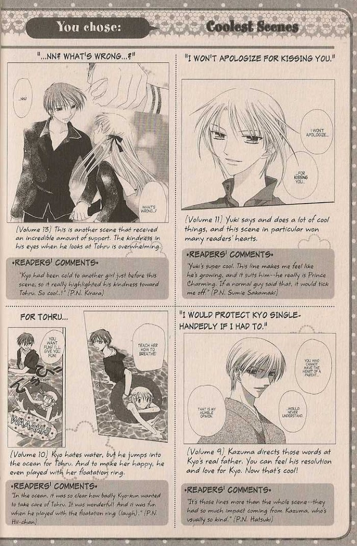 Tooru Honda is an orphan with nowhere to go but a tent in the woods, until the Souma family takes her in. However, the Souma family is no ordinary family, and they hide a grave secret: when they are hugged by someone of the opposite gender, they turn into animals from the Chinese Zodiac! Now, Tooru must help Kyou and Yuki Souma hide their curse from their classmates, as well as her friends Arisa Uotani and Megumi Hanajima. As she is drawn further into the mysterious world of the Soumas, she meets more of the family, forging friendships along the way. But this curse has caused much suffering; it has broken many Soumas. Despite this, Tooru may just be able to heal their hearts and soothe their souls. [Written by MAL Rewrite]