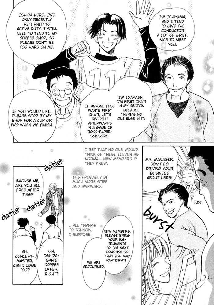 Morimura Yuuki, concertmaster at Fujimi Citizens Orchestra, loves music and his small, amateurish, but tight-knit group at Fujimi. His world is shaken up when a brilliant, new conductor, Tounoin Kei, is recruited to breathe life into their music and orchestra. Yuuki feels Tounoin's high demands will do nothing but chase away the members, but when he draws more from them than they ever thought possible, Yuuki reconsiders his own motives for staying at Fujimi. Obviously, the newcomer Tounoin understands Fujimi more than Yuuki ever did and even has the girl that Yuuki's been in love with for the past three years, at his feet. Nursing a wounded pride Yuuki wants to resign from Fujimi, but Tounoin has other ideas... (Source: MU) Ch. 1-3) Cold Front Conductor [ 寒冷前線コンダクター], Vols. 1-3 Ch. 4-5) Do You Like the Concert?, Vols. 1-2 Based on the novel series by Kou Akizuki and illustrated by Sei Gotoh, in honor of the 10-year anniversary of the original novel.