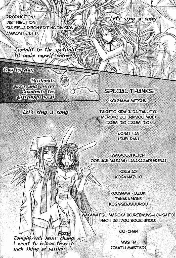 Twelve-year-old Mitsuki wants to be a singer because of a promise she made with her childhood love, however a form of throat cancer is holding her back. One day she find two strange characters in her room, Takuto and Meroko, who are gods of death. She finds out she only has a certain amount of time to live, and wants nothing more in that time then to become a singer. The two shinigami show sympathy for her, and decide to help her reach her goal by transforming her into a 16-year-old girl. (Source: ANN) Included one-shot: Volume 2: Ginyuu Meika