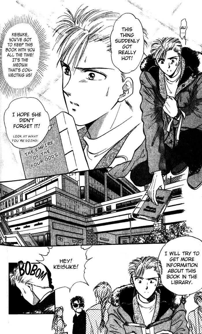 While visiting the National Library, junior-high students Miaka Yuuki and Yui Hongo are transported into the world of a mysterious book set in ancient China, "The Universe of The Four Gods." Miaka suddenly finds herself with the responsibility of being the priestess of Suzaku, and must find all of her celestial warriors for the purpose of summoning Suzaku for three wishes. However, the enemy nation of the god Seiryuu has manipulated Yui into becoming the priestess of Seiryuu. As enemies, the former best friends begin their long struggle to summon their respective gods and obtain their wishes... [Written by MAL Rewrite]