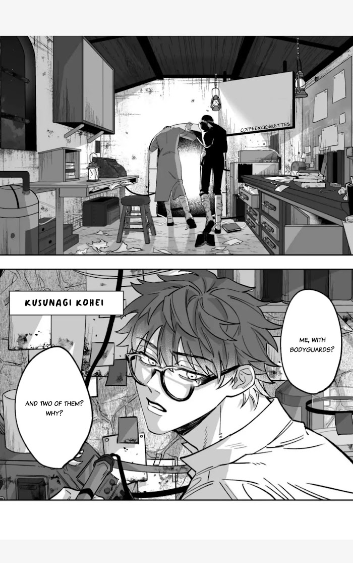 NOT OFFICIAL! "Good morning Asahi, I love you again today." Asahi, a young man employed as a watchdog for the Church of Time, an organization with the power to go to the past, lives in a slum with a beautiful young man with artificial arms and legs named Kairo. Asahi is fed up with Kairo, who whispers his love to him every day, no matter where he goes, but he continues to have physical relations with him as a mere means to dispose of his sexual desires. While protecting the “future” as a watchdog, he gets caught up in a big whirlpool orchestrated by the church...? As the stage changes rapidly from Shibuya to Manchuria to the U.S., the two struggle to transcend time and space, and wonder if there is any light in their future. And what future will he protect? A unique time crime boys' love story has begun! A beautiful, doting, obsessive seme and a black-haired, tsundere, headstrong uke.