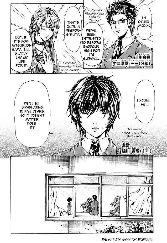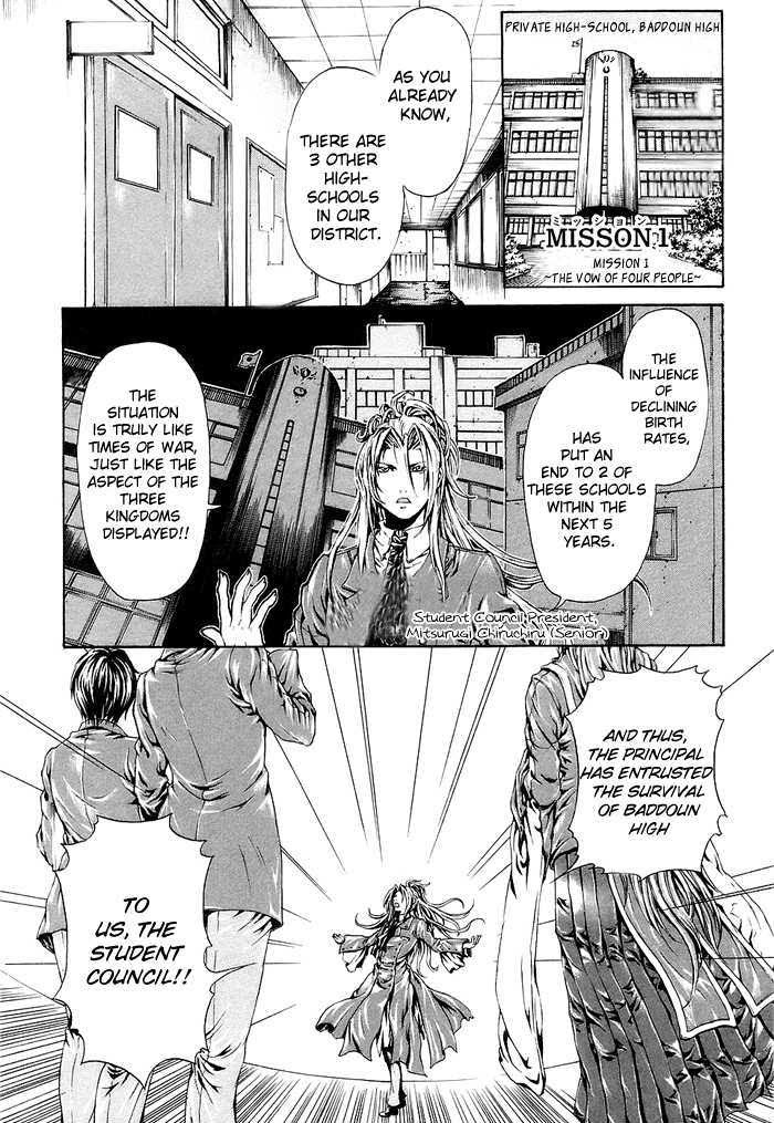 This is the tale, where the progress of senior high-school reorganization is accompanied by declining birth rate, where survivors are on the line, in regards of the reformation of their precious school challenged to increase the number of their students, This is the epic story picturing The Student Council of Pahdun High fights of youth. (Source: Pink Rose Scans)