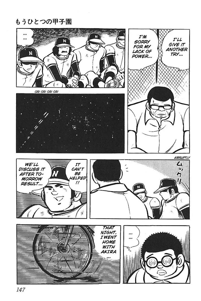 Akira always recklessly runs head-first at any problem. Having just transferred into Nanjou High's part-time evening classes, he picks a fight with the full-time students' baseball club, a favorite for Koushien who are monopolizing the playing grounds. In order to challenge the full-time baseball club on equal footing, Akira will aim for Jinguu, the home of "the other Koushien" for part-time high school students! (Source: MU) Included one-shots: Volume 2: Inochi no Mound, Mou Hitotsu no Koushien