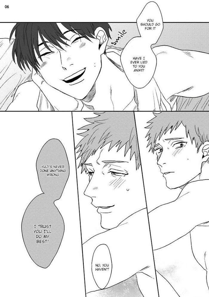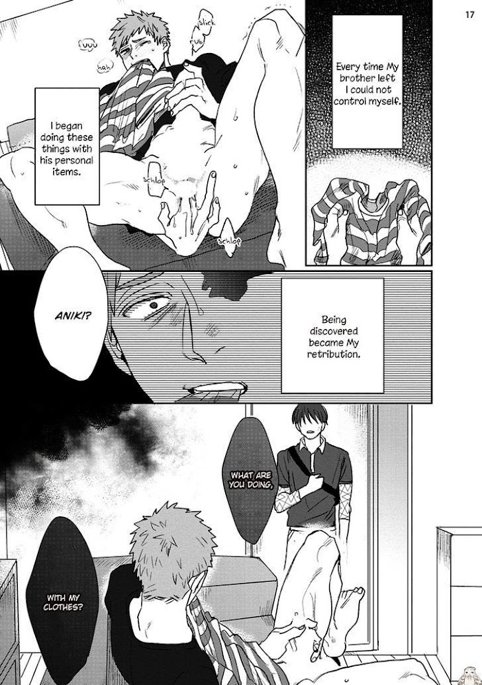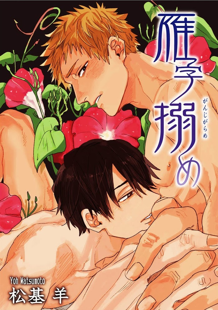 Ganjigarame manga summary: Kazuma and Yuuji are fraternal twins. The title of this one-shot is 雁字搦め, which means something along the lines of bound tightly, strictly. It especially resonates with the two twins' relationship. Kazuma is the uke you see in the beginning-- he calls out another persons' name during sex with his younger brother Yuuji. After their steamy sex, Yuuji asks him if that is the new person that he is in love with, and wants to pursue. This new subordinate is called Matsuo, and apparently he becomes really embarrassed whenever Kazuma touches him too much. However, when they lay down to sleep, and Yuuji falls asleep next to Kazuma, Kazuma talks about how he really is actually in love with Yuuji, his younger brother....