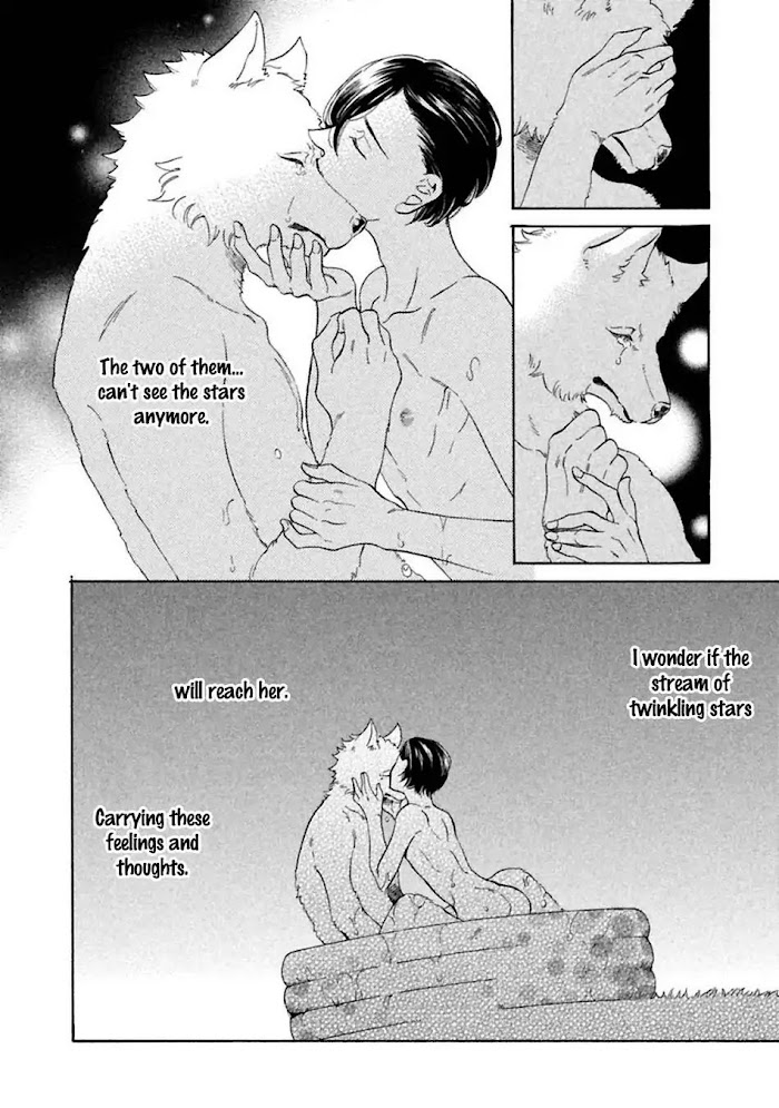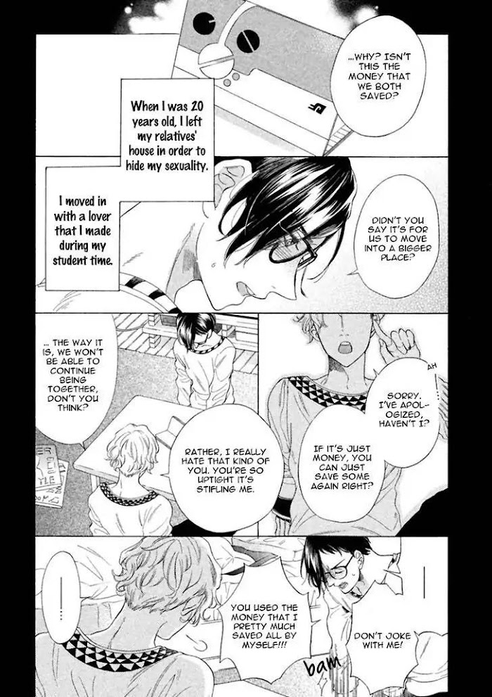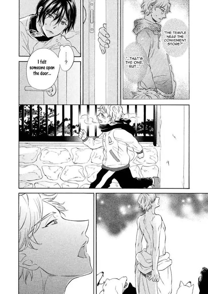 Aoi lives with his deceased lovers son, Shio and after one late morning of working, Aoi finds a lonesome puppy on the road. However, the puppy tries to escape and Aoi follows it. The puppy brings him to a mysterious place where he meets a very mysterious man. (Source: Exiled Rebels Scans)