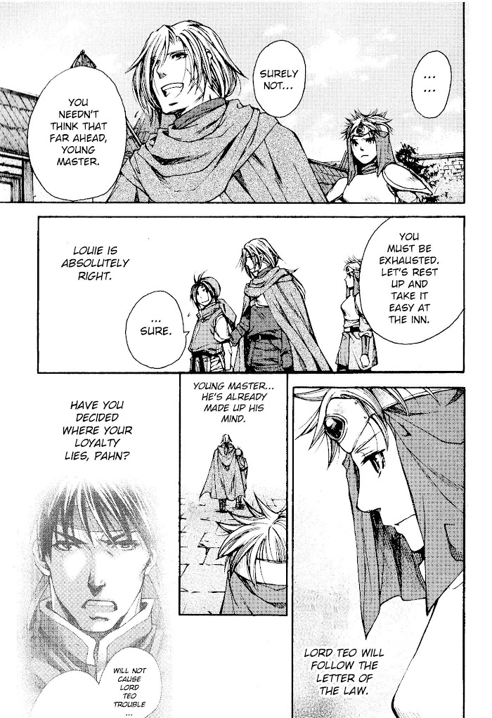 Gensou Suikoden - Uketsugareshi Monshiyou manga summary: Due to the friendship he had with Ted, McDohl's attempt to save him eventually turned his life around from being the son of General Teo McDohl of the Imperial Army to become a wanted enemy of the Empire. A chosen bearer of one of the 27 True Runes, his encounters with death were already foreboding the moment the True Rune was attached to his right hand. Yet, McDohl continues to walk upon the journey through the Empire: facing corruption, cruelty and the life-changing decisions he has to make in order to restore order and peace for the people in his country and to fulfill the hope of many that was entrusted to him. Based on the PSOne video game, it is also loosely based on the Water Margin classics, though it's limited only to the gathering of 108 Stars of Destiny in order to overthrow a corrupt government.