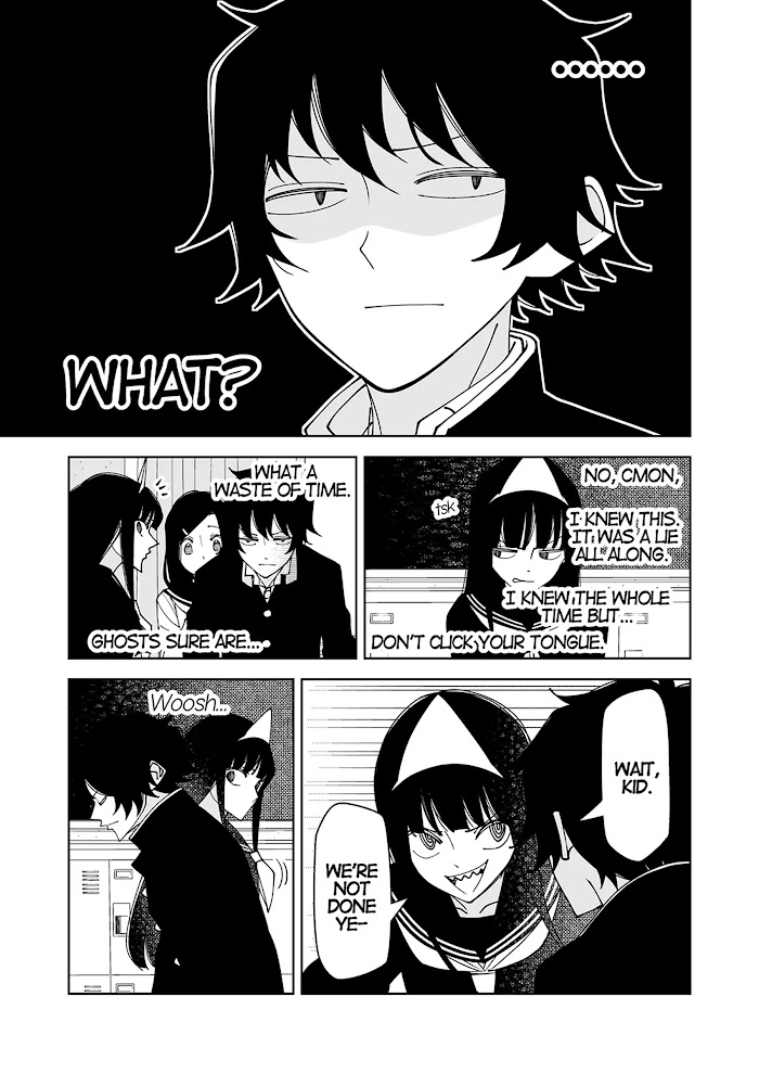 A high school student that can see ghosts but pretends not to, and Yuko who is one herself and a bit of a time-waster
