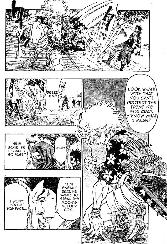 Goemon funky king of thieves manga summary: Goemon Ishikawa, the legendary king of thieves from the feudal era, has come to know that there is an important treasure being transported from the Imperial Palace to the Kamiyama mansion; an ancient artifact called "moon's melody box" (月? みの箱). Surprised by the extreme measures taken by the guards of this treasure, his indomitable spirit aches to steal this rare item that once a year can grant one special wish to whoever possesses the box, but it will not be so easy to steal it. Even worse, once it is opened, it will be harder to deal with the unusual contents of the box.
