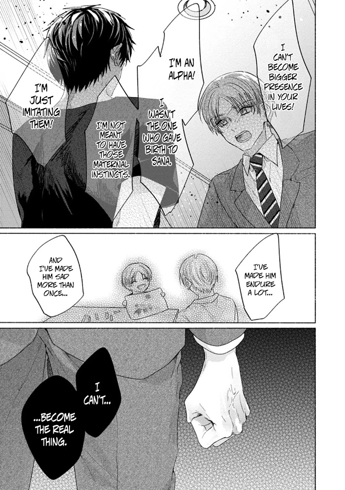 Hoshiai Ren and Amanoe Yuuya are a picture-perfect married couple. Together with their adorable son Sana, they spend every day loving and caring about each other. However, their bliss is fragile, for Yuuya trying his best to fit in the role of mama-omega, while being an alpha himself. What secret is he keeping? Will Yuuya finally muster up the courage to be honest with his feelings and become truly happy alongside the people who think of him as a family and not just a substitution? Be ready to dive head-first into a heart-warming romance between two clumsy alphas and their cute son!