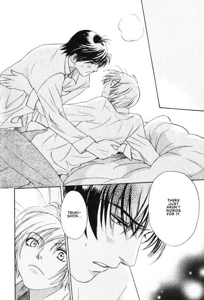 Tsukishita is completely dependant on his little brother. It's the first day of school and his little brother has already had to find Tsukishita with the things he's forgotten. When a group of girls try to help him find his older brother, they mistakenly think he's Kagumi's. When Kagumi realizes who he is he also remembers the day he confessed to Tsukishita. Tsukishita offhandedly said some heartless things to Kagumi; did he really mean them the way it sounded? (Source: MU)