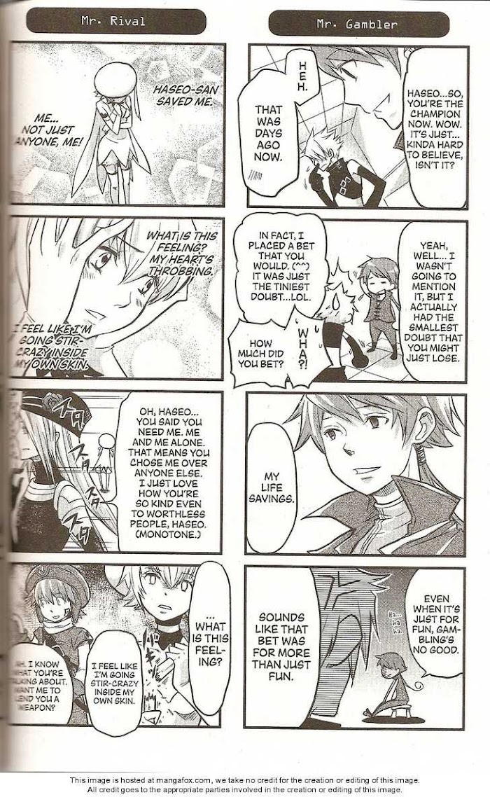 It follows the traditional 4koma with non-canon meetings between characters from both universes. The first few comics have mostly .hack//Games humor, but the majority explore the idea of inserting Kite and his friends into the .hack//G.U. storyline. Most of the humor comes from Kite's altered personality or the exaggerated personalities of other characters, mainly Atoli. (Source: dothack.wikia)